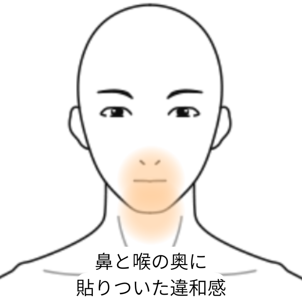 約4ヶ月前、喉がイガイガして痰が絡んでいた。医療機関で検査をしてもらうと「蓄膿」が見つかり、薬を服用して「蓄膿」はなくなったが、喉の症状は改善されないまま残っている。 その後「上咽頭炎」の疑いがあるということでBスポット療法を計10回受けたが、鼻と喉の奥に痰が貼りついた感じが続いている。 鼻、肺、気管のCT検査異常なし。胃カメラ検査異常なし。原因がわからず、漢方薬を服用中とのこと。